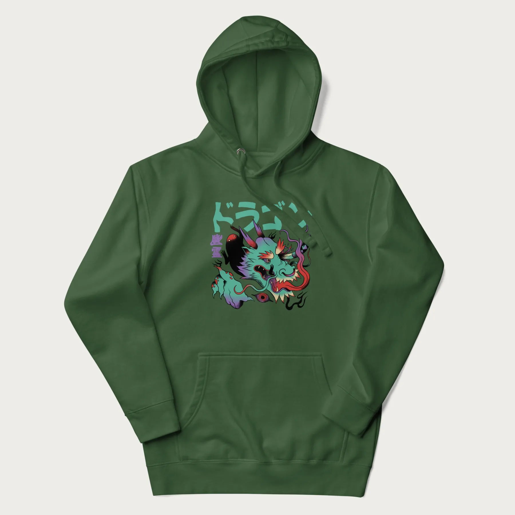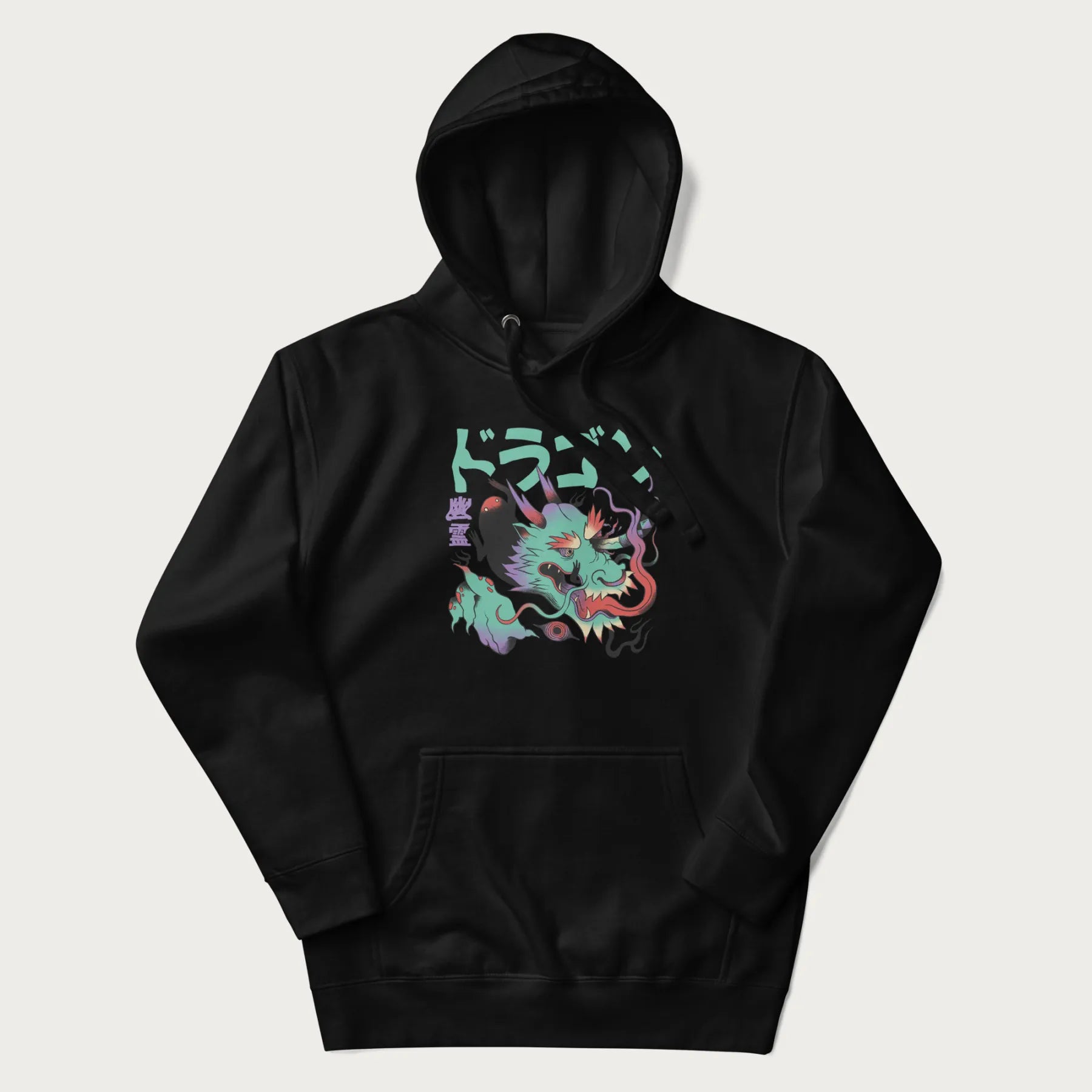 Dive into the depths of folklore and modern art with our Psychedelic Japanese Dragon Hoodie. This hoodie with Japanese text features an awe-inspiring graphic of a mythical dragon, rendered in a kaleidoscope of vibrant colors that highlight its supernatural presence. The Japanese text "ドラゴン" (meaning "Dragon") and "幽霊" (Yūrei, meaning "Ghost") enhances the aesthetic of the design. Merging traditional Japanese folklore with a psychedelic art style, this hoodie is perfect for those who appreciate bold, cultural fashion. Part of the Psychedelic Japanese Hoodie collection.